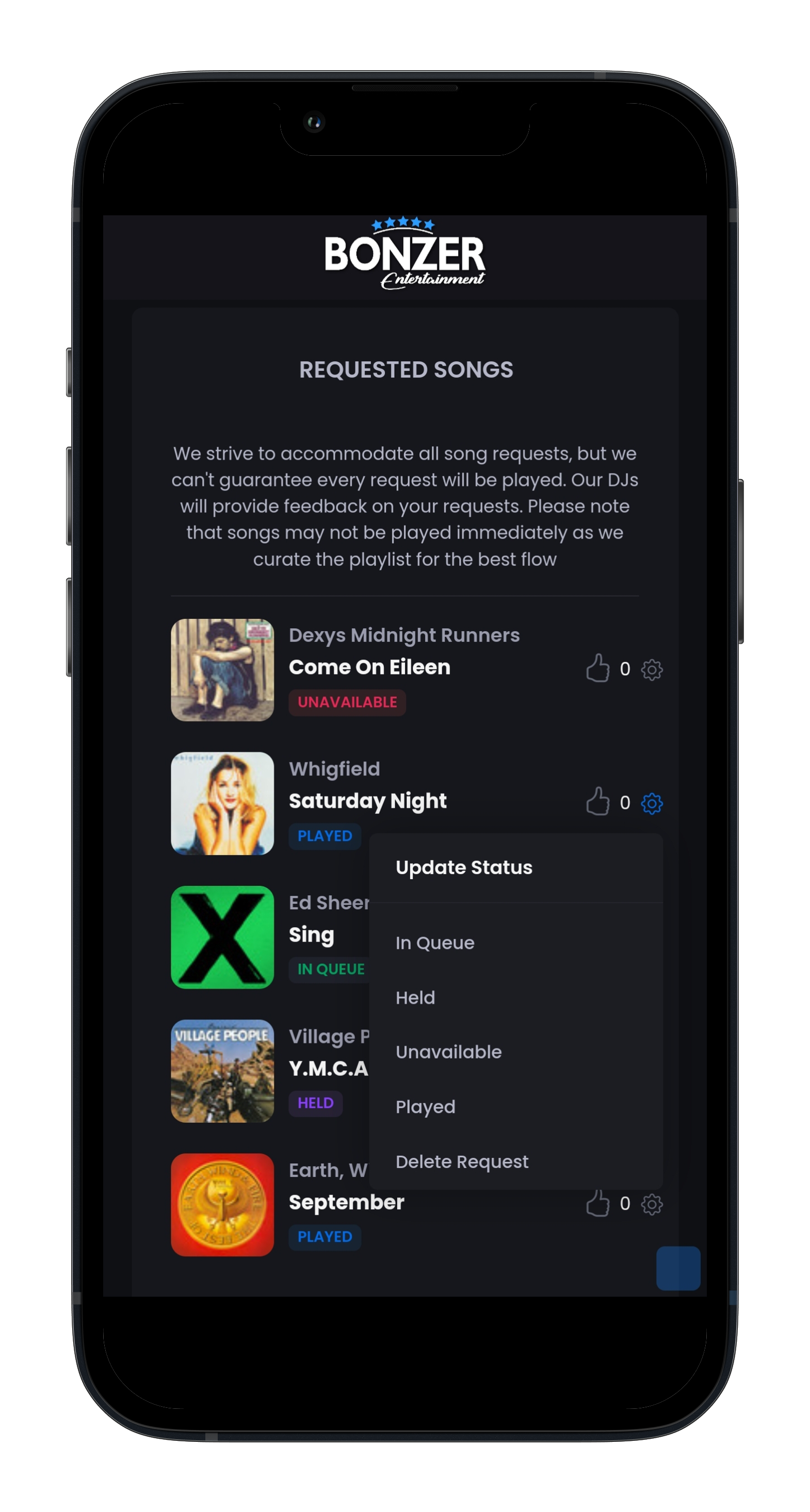 Guests can scan your QR code to add song requests which you can manage in real-time.